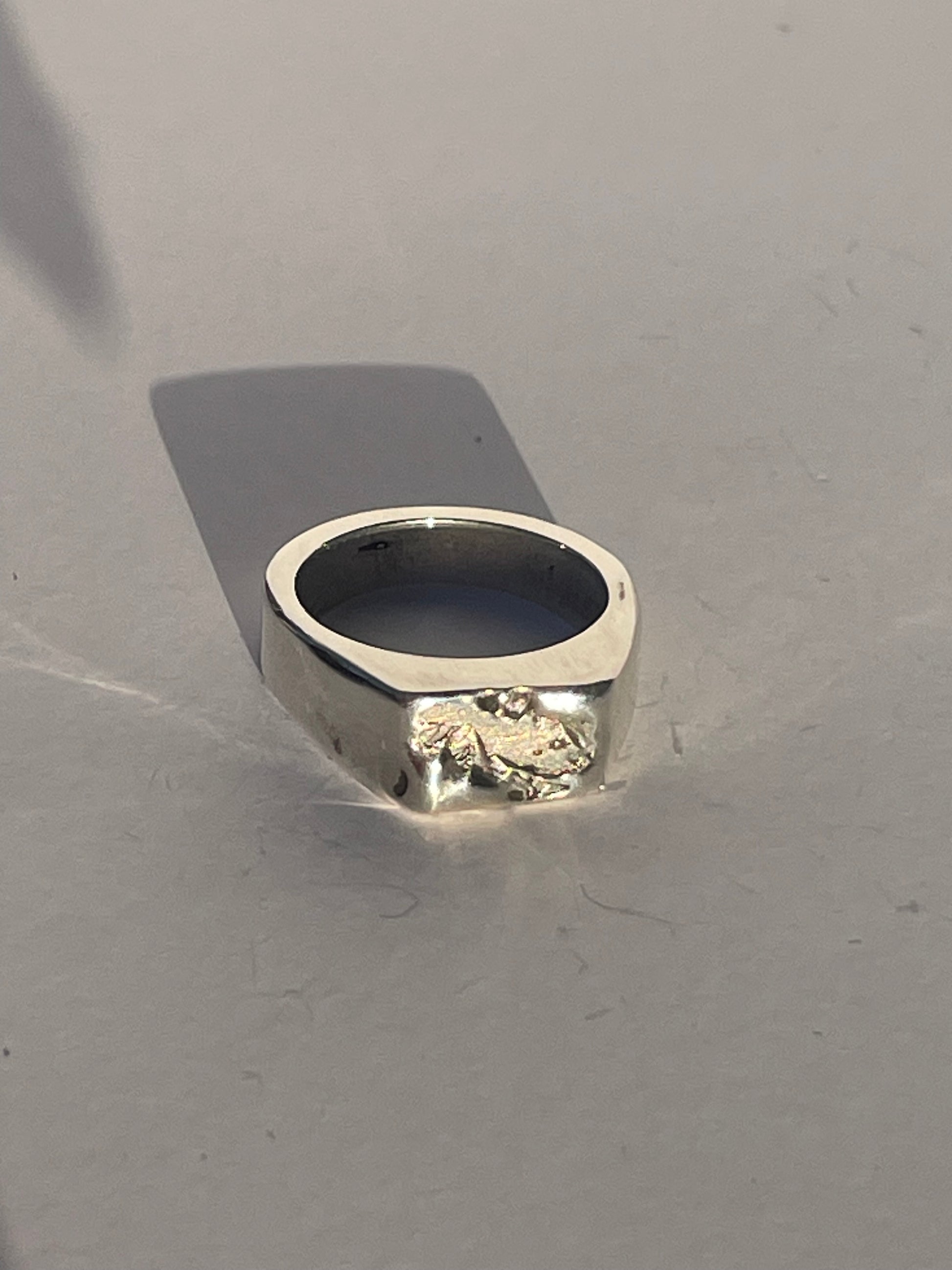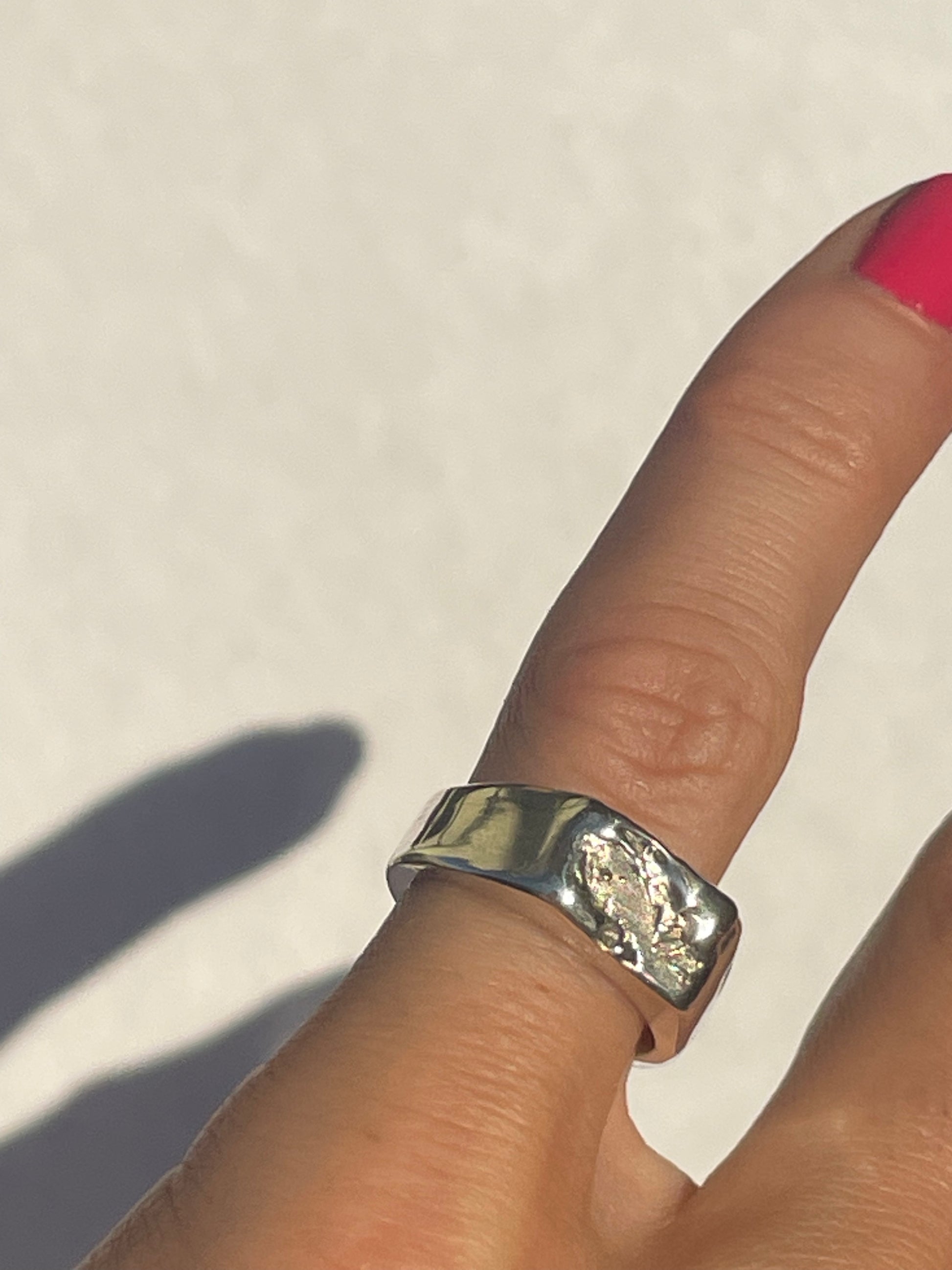 This signet ring draws its inspiration from the silent majesty of our moon. Its textured surface reflects the rugged, cratered landscape of the lunar surface – raw, powerful, and timeless. A bold statement piece that captures the dance between light and shadow, bridging earth and cosmos.