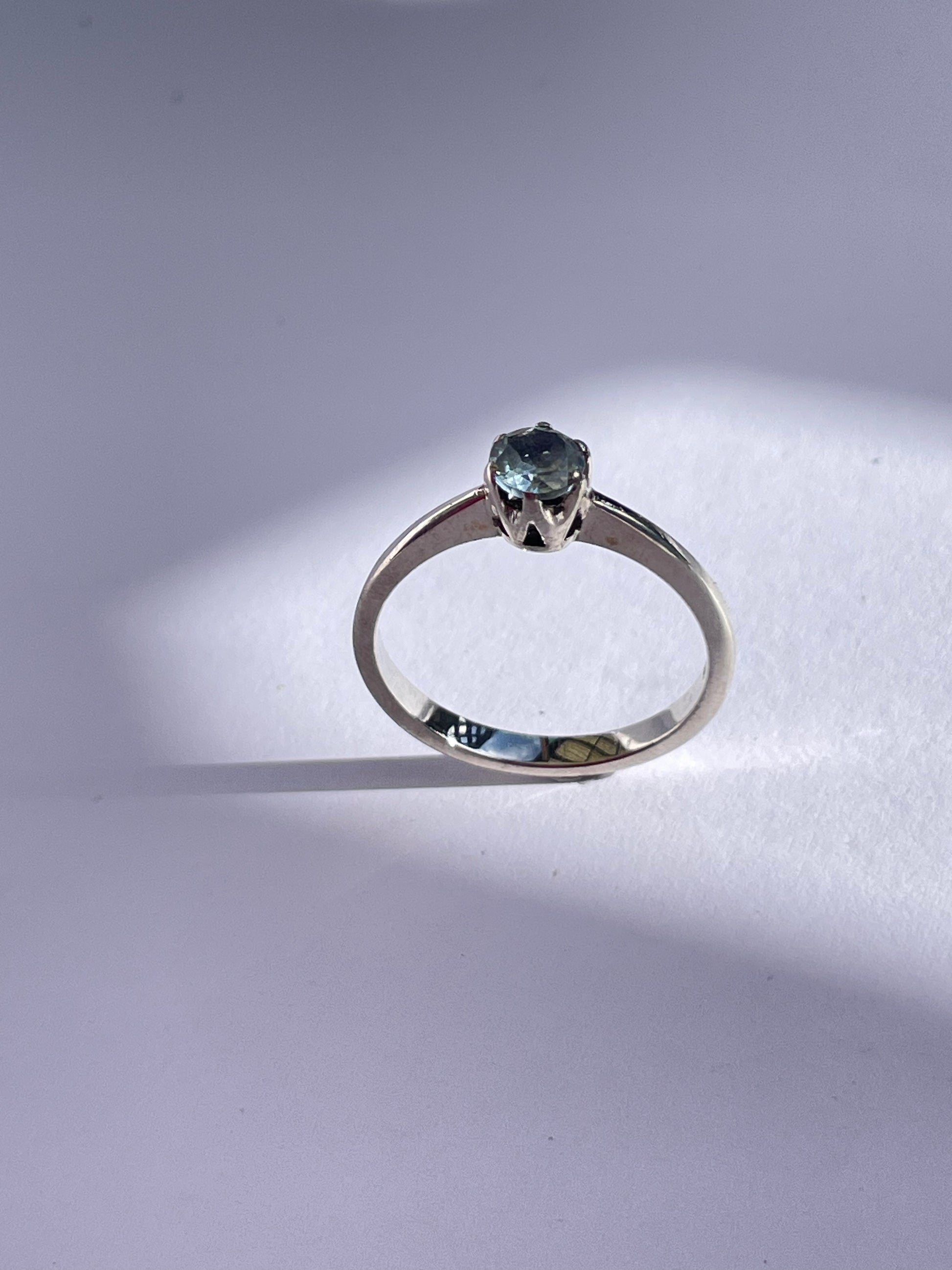 Delicately crafted in shimmering sterling silver, the Ocean’s Grace ring features a stunning princess-cut aquamarine gemstone that radiates the calm and clarity of ocean waves.