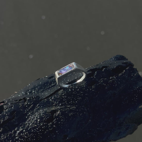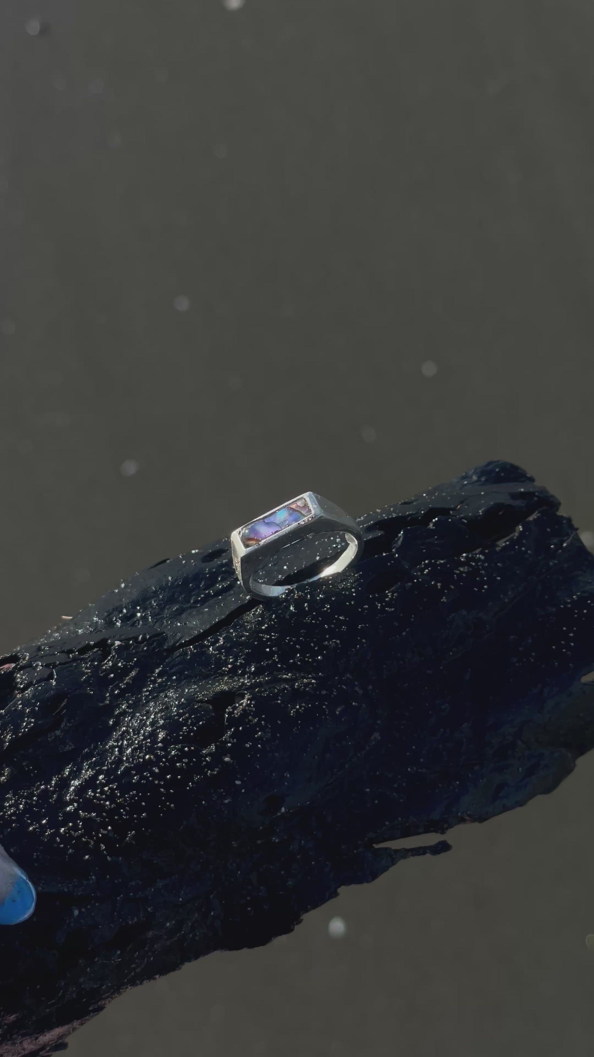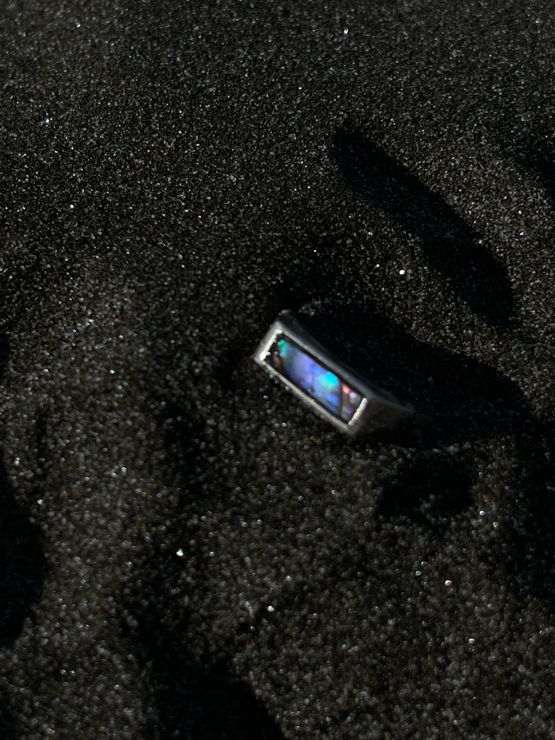 Inspired by the raw beauty of New Zealand’s nature, this ring features handpicked shells, with the iridescent pāua shell at its heart – a precious ocean treasure symbolizing transformation, intuition, and inner light.