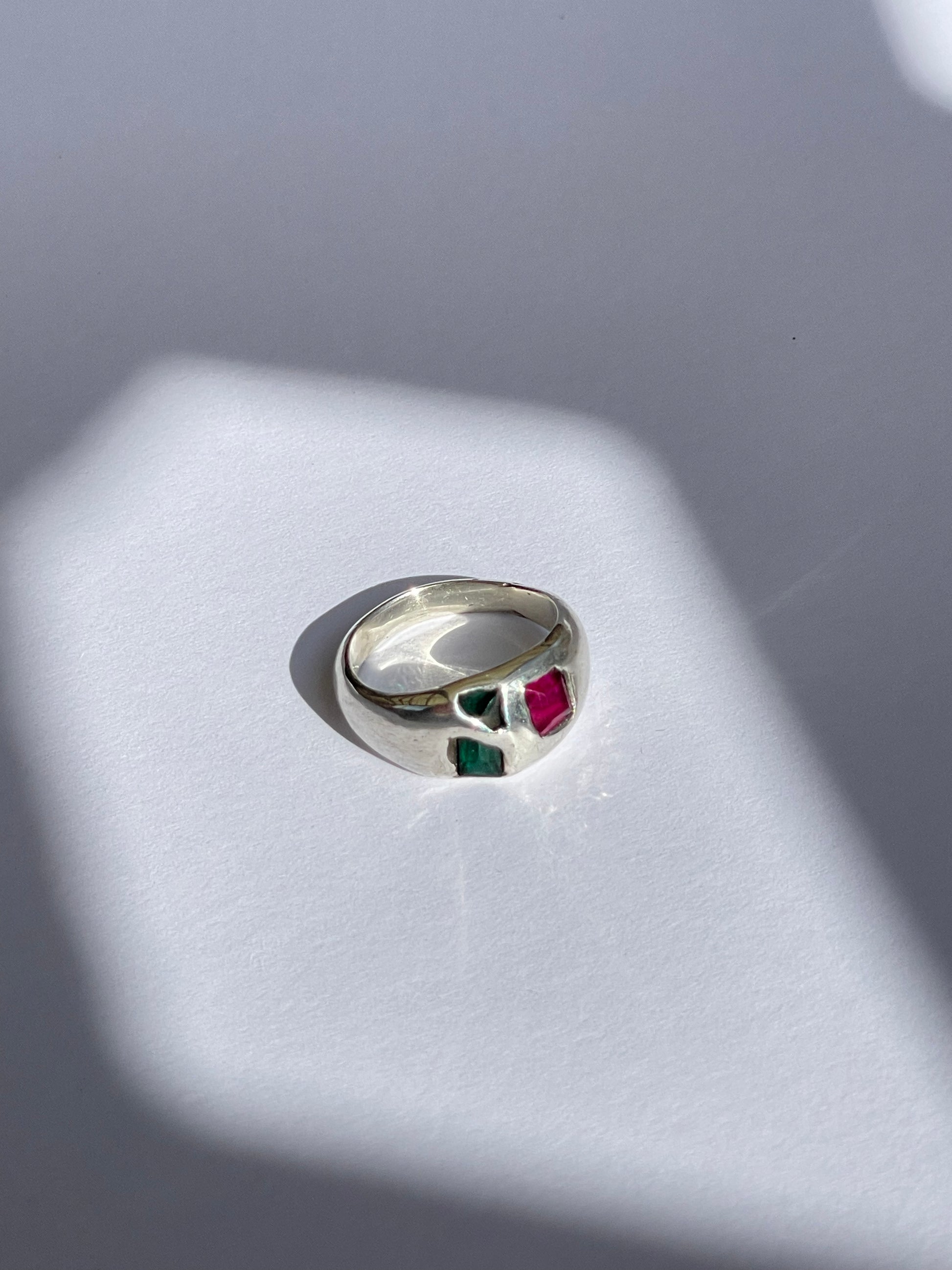 The Wild Orchid ring captures the vibrant allure of a wild orchid. Its inverted gem glows in a captivating blend of green and pink — as mysterious and vivid as the flower it’s named after. Set in simple silver, it’s a perfect treasure for those who seek something truly unique.
